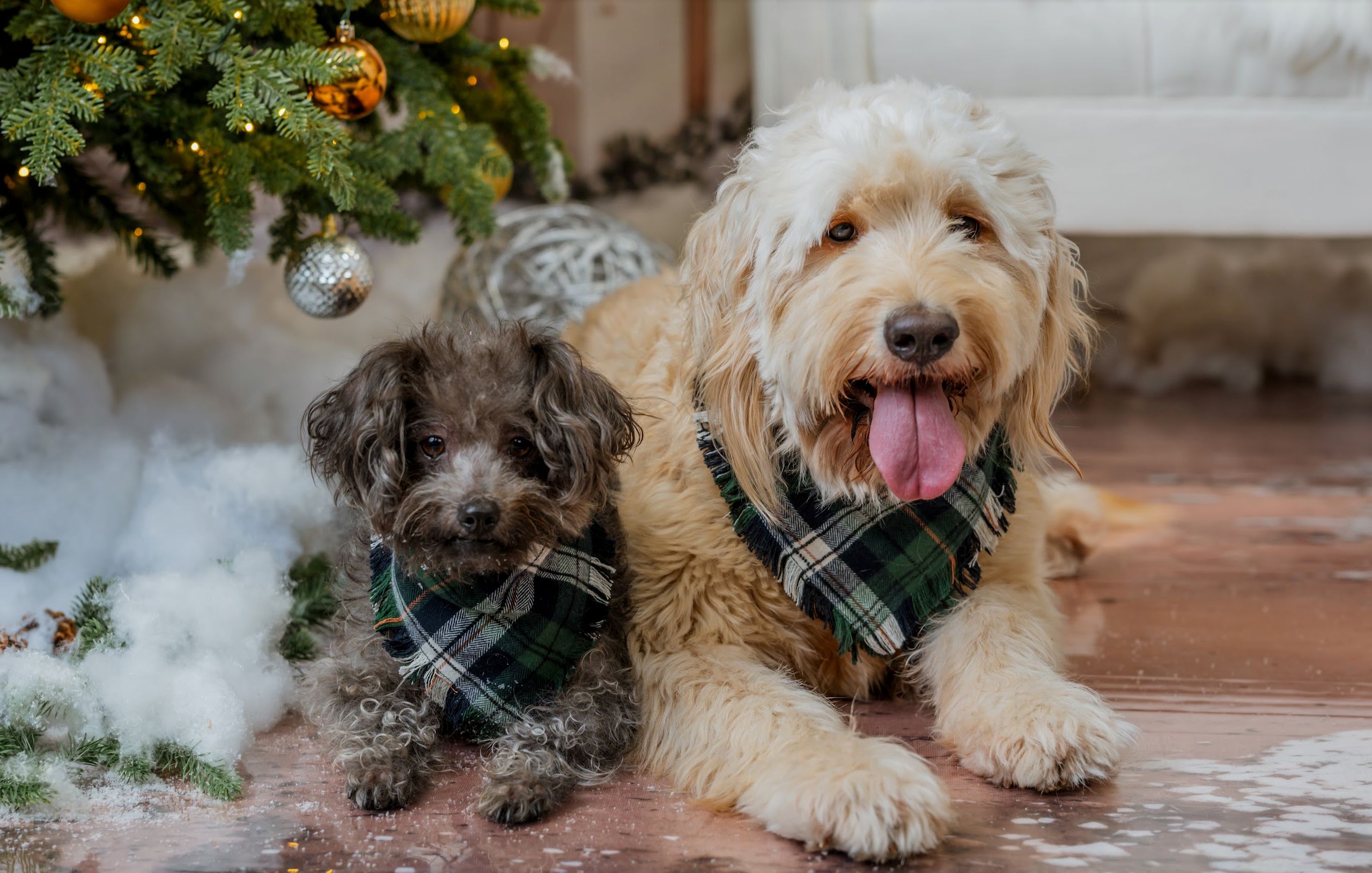 Bouclé Dog Bone Christmas Stocking with Woven Plaid Bandana